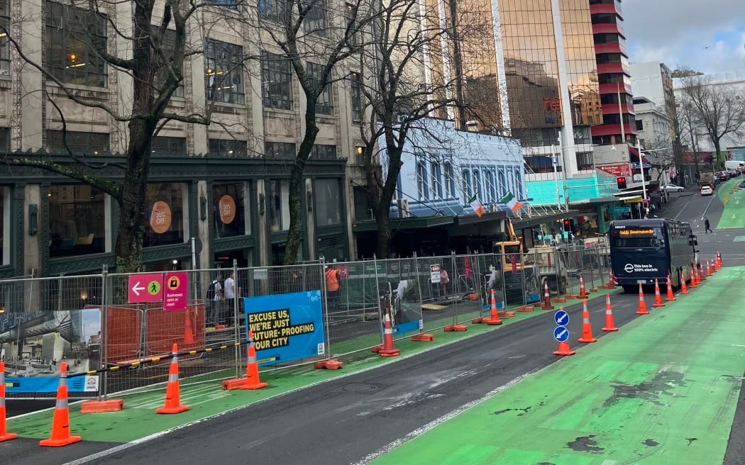 You wouldn’t know it from the GDP stats, but there’s an awful lot happening in Auckland. Pavements are being ripped up, shops are being gutted, bicycle lanes are being filled with concrete planter boxes, and the roads are being painted green so that Auckland Transport can take their empty buses for test runs on them.